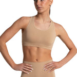 Confidence is effortless in the Seamless Racerback Sports Bra. This double-layered sports bra offers smooth coverage and support when worn under layers. Perfect for under dancewear and clothing, this bra features strategically placed ribbing for a secure, contoured, and comfortable fit to the body. Available in adult and tween sizes.